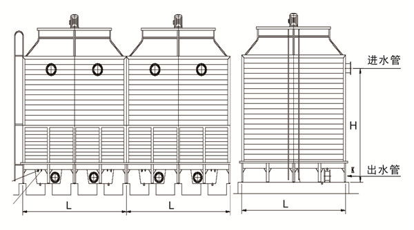 YKN方形逆流式冷却塔却塔结构图: